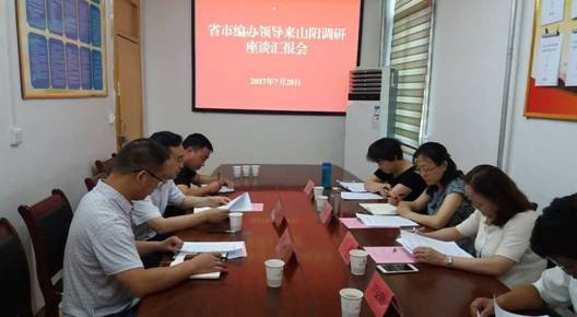 上午召开了座谈汇报会,山阳县编办主任瞿诗旺就山阳县机构编制实名制管理工作向调研组作了汇报。