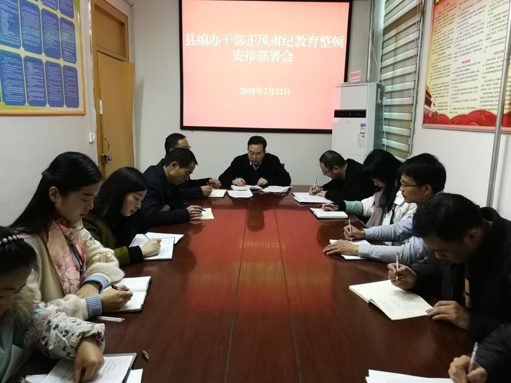 2018年2月22日上午,县编办召开全体干部职工会,安排部署年初正风肃纪集中教育整顿活动。